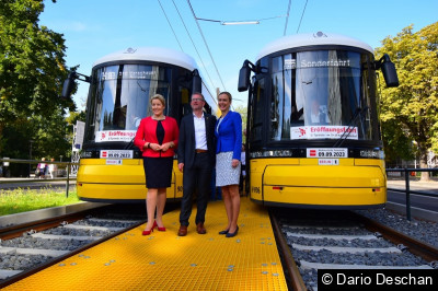 «Dass Mobilität ein zentrales Thema unserer Zeit ist, sieht man auch an den Anforderungen, die an dieses gestellt werden: Flexibel, modern, barrierefrei und nachhaltig sollen Mobilitätsangebote sein, um von Nutzerinnen und Nutzer auch als attraktive Optionen wahrgenommen zu werden. Mit den sechs neuen Straßenbahnen macht Gera hier wieder einen wichtigen Schritt nach vorn. Denn mit ihnen wird nicht nur die Flotte der GVB modernisiert, sondern auch eine wichtige Weiche für die Zukunft des ÖPNV in unserer Stadt gestellt», erklärte Oberbürgermeister Julian Vonarb.