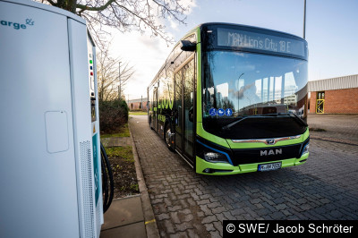 „Bis Mitte 2025 wollen wir als EVAG die ersten Elektrobusse in Betrieb nehmen. Jetzt testen wir vorab ein baugleiches Modell unter realen Bedingungen auf Leistungsfähigkeit im Fahrbetrieb“, sagt Mario Bauchspieß, Leiter der Bus-Werkstatt der Erfurter Verkehrsbetriebe.